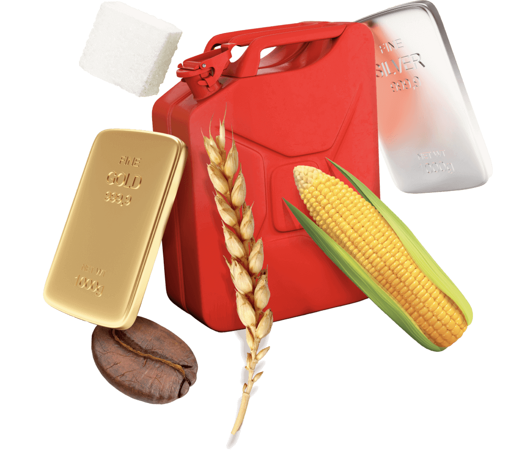 Aproveite spreads notavelmente adaptáveis em CFDs que englobam prata, ouro, platina, petróleo bruto, gás natural e milho.